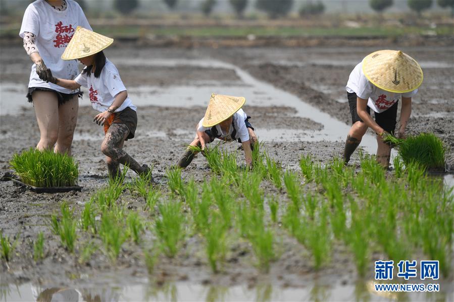 5月24日,小朋友與家長(zhǎng)在稻田里參加親子插秧比賽。當(dāng)日,十余名小朋友在家長(zhǎng)的帶領(lǐng)下來到浙江省湖州市吳興區(qū)八里店鎮(zhèn)尹家圩糧油植保農(nóng)機(jī)專業(yè)合作社的稻田中,參加親子插秧、稻田捉魚等農(nóng)事體驗(yàn)活動(dòng)。新華社記者黃宗治攝