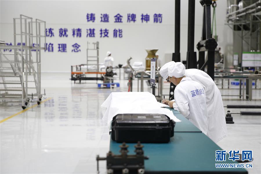 5月26日,工作人員在藍箭航天智能制造基地發(fā)動機裝配區(qū)內(nèi)進行發(fā)動機質檢工作。新華社記者張玉薇攝