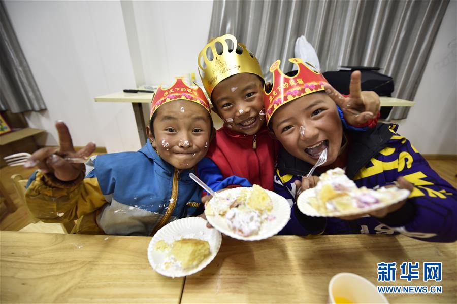 5月27日,玉麥鄉(xiāng)小學(xué)的孩子們在慶祝“生日”。新華社記者王炳坤攝