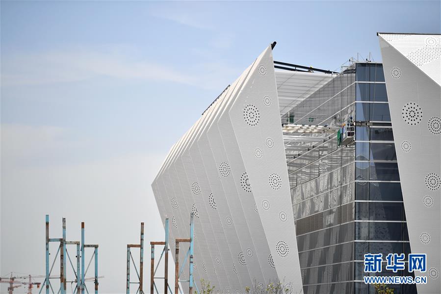 5月29日,工人在西安奧體中心游泳館施工。新華社記者張博文攝
