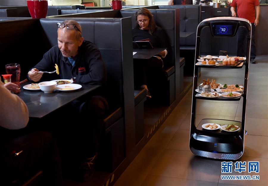 5月28日,在奧地利維也納一家亞洲餐廳內(nèi),機(jī)器人給顧客上菜。維也納的一家亞洲餐廳于疫情期間重新營業(yè)后,更多利用機(jī)器人上菜,以減少服務(wù)員和顧客之間的非必要接觸。新華社記者郭晨攝
