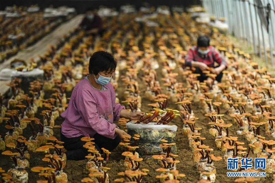 5月30日,在山東省棗莊市嶧城區(qū)峨山鎮(zhèn)食用菌培植扶貧基地,工人在進行靈芝種植管理。為了幫助貧困戶穩(wěn)定脫貧,山東省棗莊市嶧城區(qū)峨山鎮(zhèn)采取“公司+基地+農(nóng)戶”的經(jīng)營模式,建立食用菌培植扶貧基地,發(fā)展食用菌種植產(chǎn)業(yè),惠及160余名貧困戶。目前,基地已集菌種試驗、培育、生產(chǎn)、銷售于一體,年銷售菌棒500多萬袋,生產(chǎn)各類鮮菇1200余噸。新華社記者 范長國 攝