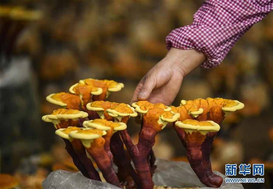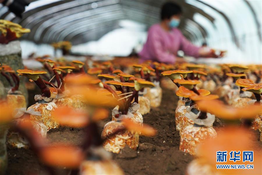 5月30日,在山東省棗莊市嶧城區(qū)峨山鎮(zhèn)食用菌培植扶貧基地,工人在進行靈芝種植管理。為了幫助貧困戶穩(wěn)定脫貧,山東省棗莊市嶧城區(qū)峨山鎮(zhèn)采取“公司+基地+農戶”的經(jīng)營模式,建立食用菌培植扶貧基地,發(fā)展食用菌種植產業(yè),惠及160余名貧困戶。目前,基地已集菌種試驗、培育、生產、銷售于一體,年銷售菌棒500多萬袋,生產各類鮮菇1200余噸。新華社記者 范長國 攝