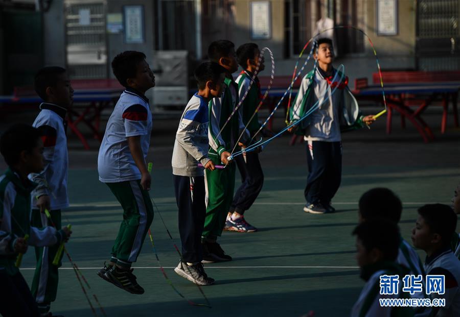 跳繩運動已經(jīng)深深融入七星小學(xué)的日常,放學(xué)后,孩子們都愿意在學(xué)校跳跳繩(2019年11月18日攝)。新華社記者劉大偉攝