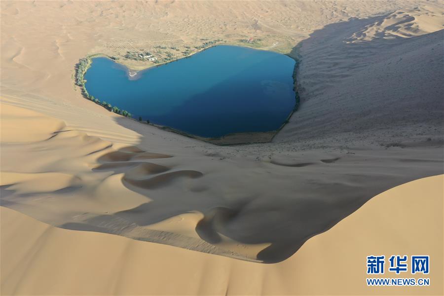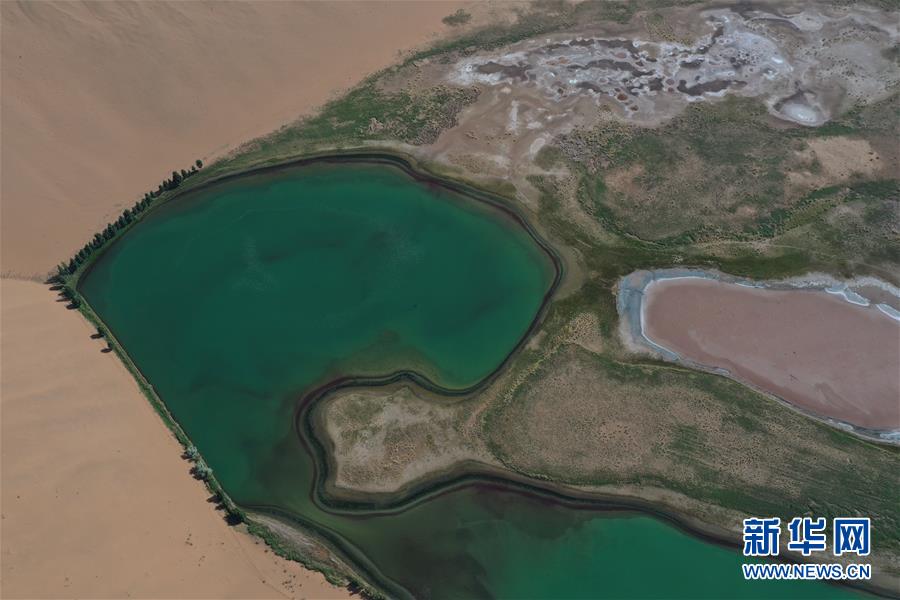 這是5月29日拍攝的巴丹吉林沙漠的諾爾圖湖(無人機(jī)照片)。新華社記者徐欽攝。