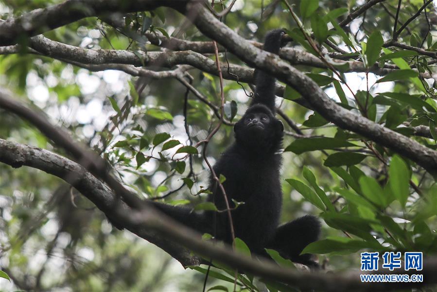 這是在海南霸王嶺自然保護(hù)區(qū)內(nèi)拍攝的海南長臂猿(2019年10月25日攝)。新華社記者蒲曉旭攝