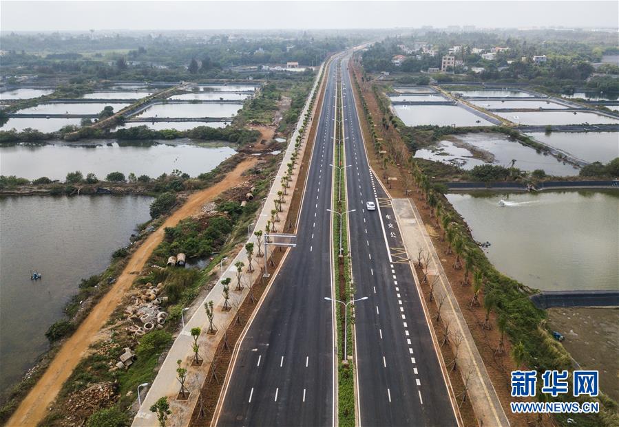 這是4月1日拍攝的位于海口江東新區(qū)的東寨港大道(無人機(jī)照片)。新華社記者蒲曉旭攝
