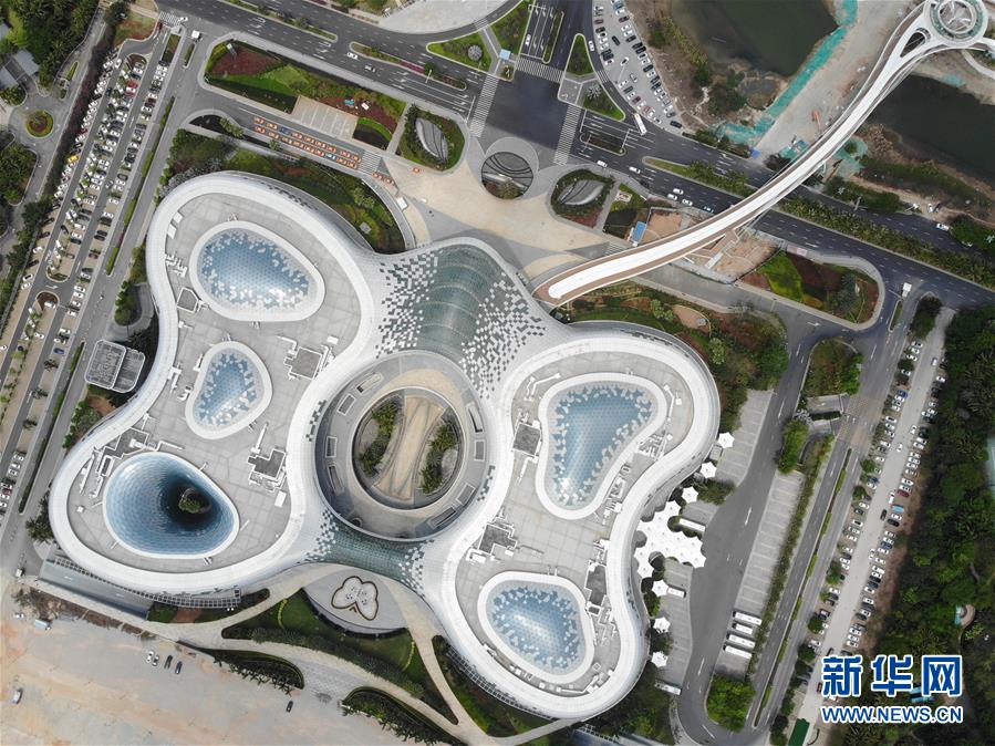 這是4月11日拍攝的建設(shè)中的海口美蘭國際機(jī)場二期項(xiàng)目航站樓(無人機(jī)照片)。新華社記者郭程攝