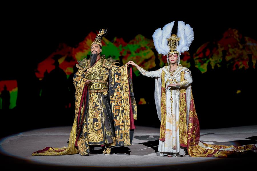 5月28日,演員在大型實景神話音樂劇《昆侖之約》中表演。5月28日,新疆文化旅游新名片——大型實景神話音樂劇《昆侖之約》在烏魯木齊南山景區(qū)上演。該劇融自然山水之美、藝術(shù)文化之光、現(xiàn)代科技之新于一體,為市民獻(xiàn)上一場視聽盛宴。新華社記者丁磊攝。