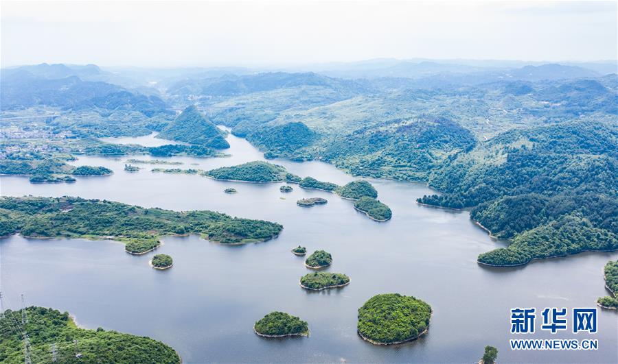 6月2日拍攝的貴陽市阿哈湖國家濕地公園(無人機(jī)照片)。初夏時節(jié),貴州省貴陽市阿哈湖國家濕地公園草木蒼翠,風(fēng)景如畫,吸引人們前來休閑游玩。新華社記者陶亮攝。