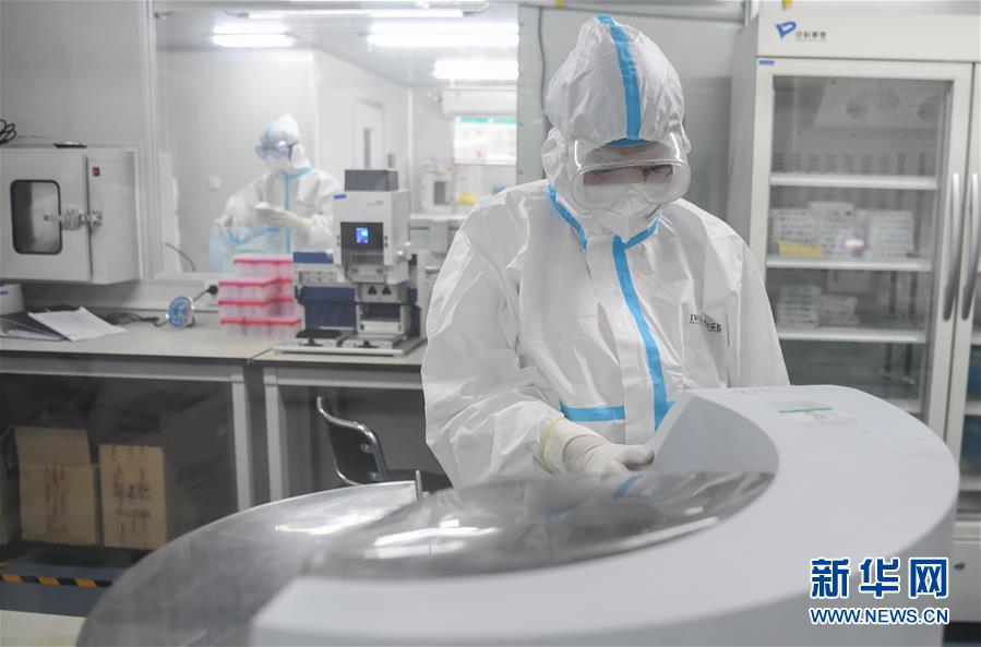 6月2日,在武漢金域醫(yī)學(xué)檢驗(yàn)所里,檢測(cè)人員在工作。新華社記者程敏攝。