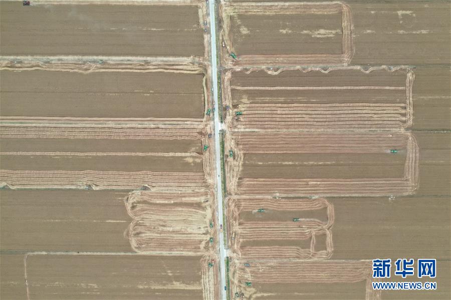 “三夏”時(shí)節(jié),中原大地一片金黃。位于河南省周口市的黃泛區(qū)農(nóng)場(chǎng)機(jī)聲隆隆,10萬(wàn)畝小麥?zhǔn)斋@正酣。
