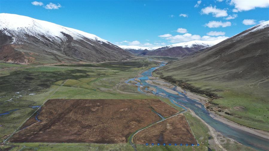 四川省甘孜藏族自治州理塘縣地處青藏高原東部,縣城海拔約4000米,有“天空之城”的美譽。時值初夏,理塘的天空碧藍如洗,巍峨的雪山環(huán)繞四周,牦牛星星點點散落于曠野之上,構成一幅高原特有的壯美圖景。新華社記者李夢馨攝。