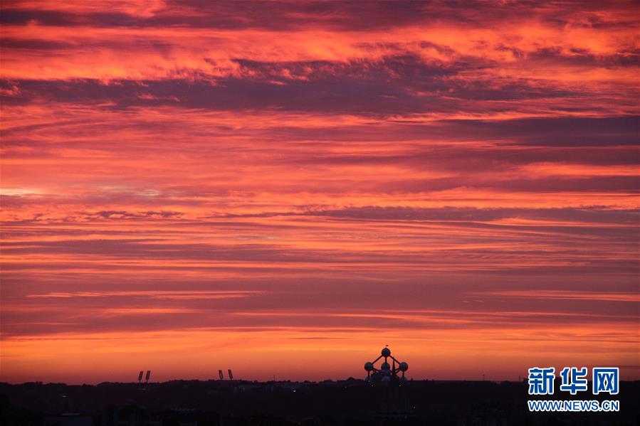 2020年5月22日黃昏時(shí)分,比利時(shí)首都布魯塞爾漫天的火燒云映襯著原子球塔。6月5日是第47個(gè)聯(lián)合國(guó)世界環(huán)境日,今年的主題為“關(guān)愛(ài)自然刻不容緩”。新華社記者鄭煥松攝。