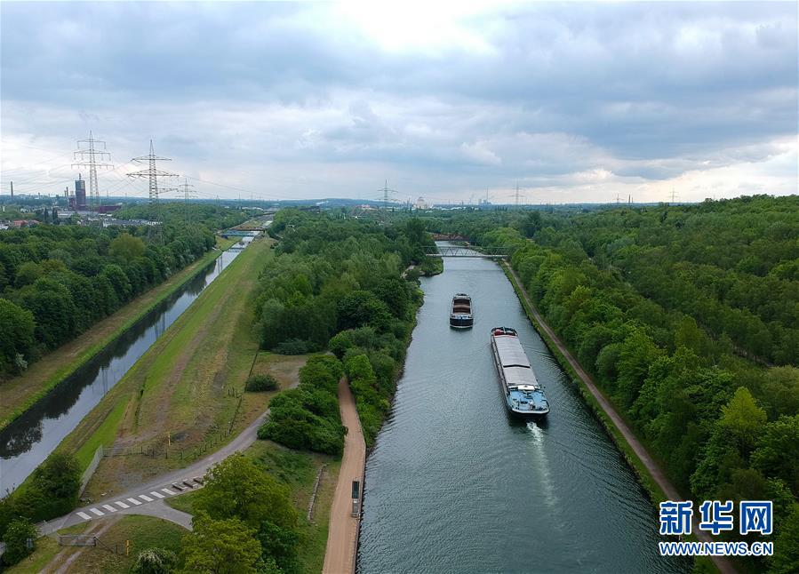 2019年5月10日,貨船航行在德國(guó)埃森埃姆舍河上。埃森位于德國(guó)傳統(tǒng)煤鐵工業(yè)區(qū)——魯爾區(qū)。魯爾區(qū)經(jīng)歷了產(chǎn)業(yè)轉(zhuǎn)型,已成為環(huán)境優(yōu)美、高科技聚集的創(chuàng)新經(jīng)濟(jì)區(qū)。6月5日是第47個(gè)聯(lián)合國(guó)世界環(huán)境日,今年的主題為“關(guān)愛(ài)自然刻不容緩”。新華社記者逯陽(yáng)攝。