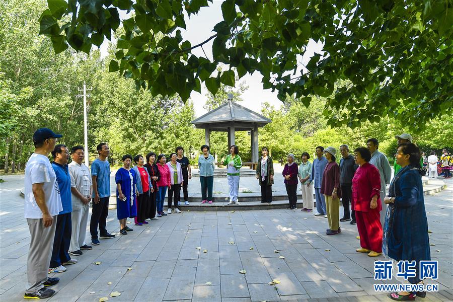 6月5日,市民在文安縣水景公園內(nèi)練習(xí)合唱。近年來(lái),河北省文安縣將植樹(shù)造林與城市建設(shè)有機(jī)融合,探索“政府引導(dǎo)、企業(yè)運(yùn)作、多方共贏”的市場(chǎng)化植樹(shù)造林新模式,大規(guī)模推進(jìn)國(guó)土綠化,打造人與自然和諧共生的優(yōu)美生態(tài)環(huán)境,構(gòu)筑京津雄綠色屏障。截至目前,該縣森林覆蓋率已經(jīng)達(dá)到33%,城區(qū)綠地面積達(dá)到36.48%。新華社記者李曉果攝。