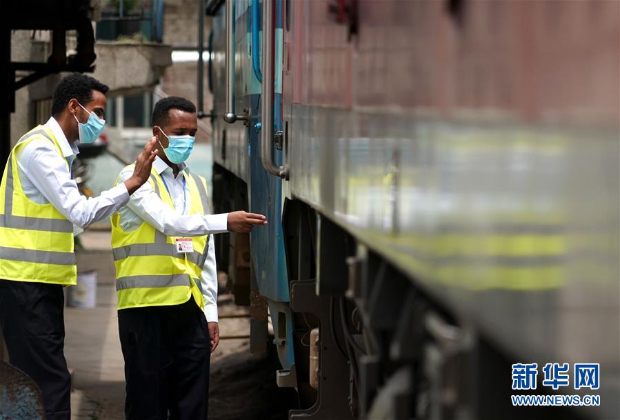 6月5日,帶教司機在教伊迪內(nèi)卡邱(中)和特瑞薩(右)進行機車檢查作業(yè)。 新華社記者 李安 攝