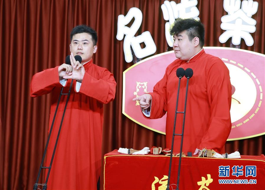 6月6日晚,天津名流茶館的相聲演員在付費(fèi)直播《名流名家“逗你玩”》演出中說相聲。隨著疫情防控形勢逐漸向好,天津的一些茶館紛紛轉(zhuǎn)戰(zhàn)“云端”說相聲,推出付費(fèi)直播演出,并邀請一些幸運(yùn)觀眾到現(xiàn)場觀看,在傳播津味相聲、培養(yǎng)年輕觀眾的同時(shí),也為即將到來的線下演出“預(yù)熱”。新華社記者周潤健攝