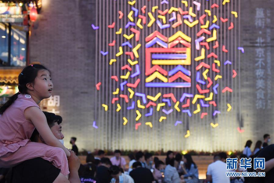 6月6日,小朋友在北京五棵松華熙Live游玩。6月6日晚,北京79個(gè)地標(biāo)、商圈、特色街區(qū)同時(shí)點(diǎn)亮夜京城,營造消費(fèi)氛圍,北京“夜經(jīng)濟(jì)”也加速回暖。新華社記者張晨霖?cái)z