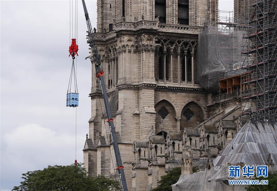 這是6月9日在法國(guó)巴黎拍攝的正在進(jìn)行腳手架拆除工作的巴黎圣母院。法國(guó)巴黎圣母院于8日開(kāi)始拆除去年大火中被焚的腳手架。作為巴黎圣母院修復(fù)工作的重要組成部分,這項(xiàng)工程預(yù)計(jì)將持續(xù)至少3個(gè)月。2019年4月15日,巴黎圣母院遭遇大火,當(dāng)時(shí)圣母院正在進(jìn)行維修,搭建的腳手架在火災(zāi)中損毀、變形。新華社記者高靜攝