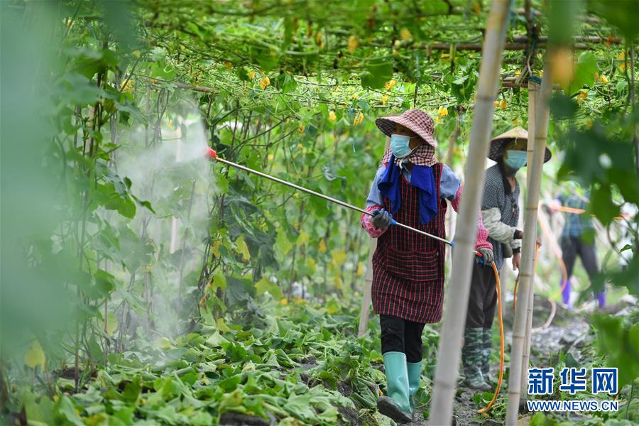 6月9日,在江華瑤族自治縣濤圩鎮(zhèn)鳳尾村蔬菜基地,農(nóng)戶對農(nóng)作物進(jìn)行噴灑消毒。近日,受連續(xù)強(qiáng)降雨影響,湖南省永州市江華瑤族自治縣遭遇洪澇災(zāi)害,部分農(nóng)田受災(zāi)。目前,江華瑤族自治縣洪水已退,群眾在當(dāng)?shù)叵嚓P(guān)部門引導(dǎo)下積極開展生產(chǎn)自救。新華社記者陳澤國攝