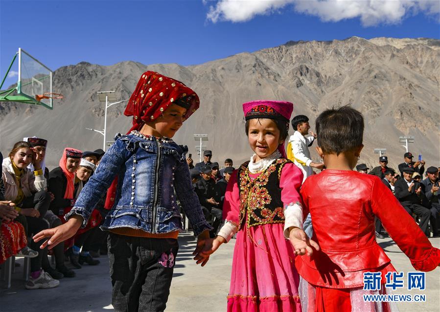 達布達爾鄉(xiāng)熱斯喀木村的小朋友在演出現(xiàn)場隨著音樂跳舞(6月6日攝)。新華社記者胡虎虎攝