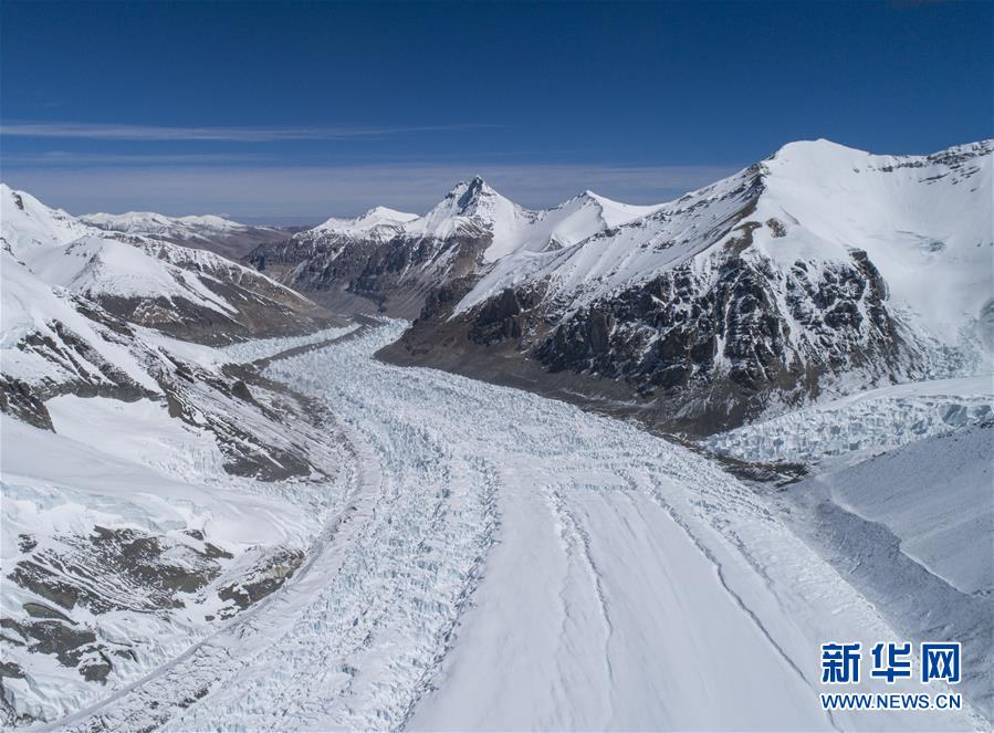 這是珠峰腳下的絨布冰川(無(wú)人機(jī)照片,5月10日攝)。從空中俯瞰珠穆朗瑪峰北坡,生機(jī)勃勃的高原濕地、蜿蜒曲折的盤(pán)山公路、壯麗秀美的絨布冰川,還有安靜的村莊和熱鬧的登山營(yíng)地,共同構(gòu)成一幅壯美畫(huà)卷。新華社記者孫非攝