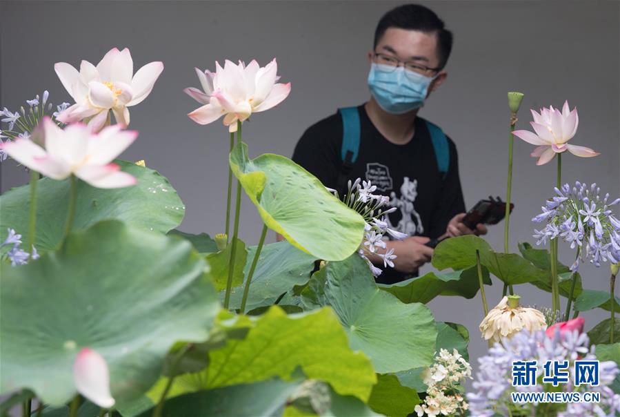 6月12日,游人在西湖郭莊觀看荷展。隨著氣溫升高,杭州西湖荷花次第開放,引得游人駐足。新華社記者 翁忻旸 攝