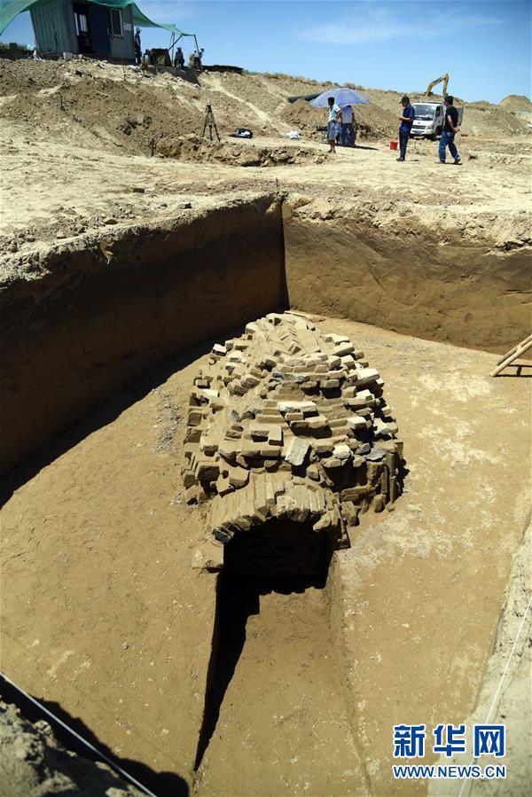這是6月14日拍攝的山東小清河章丘段考古發(fā)掘現(xiàn)場。近日,濟南市考古研究所考古工作隊在對小清河章丘段進行考古調(diào)查和勘探時,發(fā)現(xiàn)了13座年代集中在北朝末期至唐朝初期的古墓。新華社記者 王凱 攝