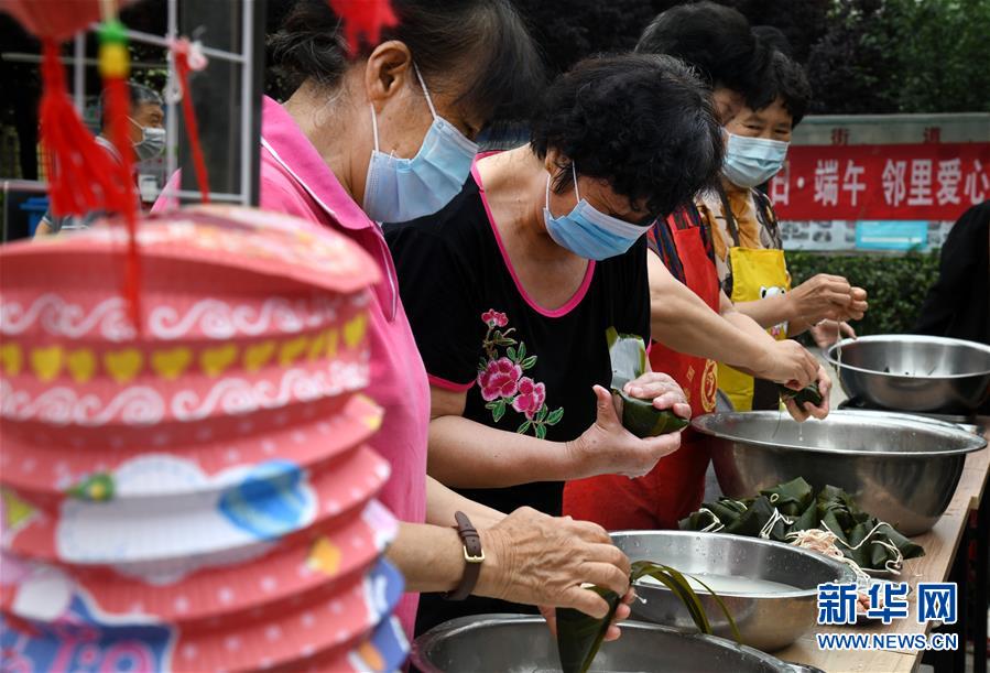 6月17日,水清溝街道居民在社區(qū)廣場上包粽子。當日,青島市北區(qū)水清溝街道開展迎端午鄰里愛心傳遞進網(wǎng)格活動,居民通過包粽子、吃粽子、網(wǎng)上端午傳統(tǒng)文化課等形式傳遞鄰里愛心,傳承民俗文化。新華社記者 李紫恒 攝