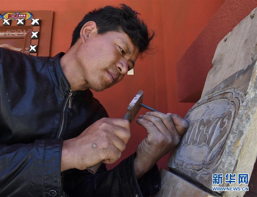 6月13日,墨吉在棒托石刻公園里制作石刻。新華社記者 劉坤 攝
