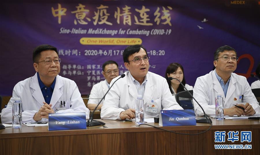 6月17日,寧夏醫(yī)科大學(xué)總醫(yī)院專家與羅馬第一公共醫(yī)療衛(wèi)生中心醫(yī)務(wù)人員進(jìn)行視頻交流。當(dāng)日,寧夏醫(yī)科大學(xué)總醫(yī)院專家通過視頻連線,與意大利羅馬第一公共醫(yī)療衛(wèi)生中心一線醫(yī)務(wù)人員分享防疫抗疫經(jīng)驗(yàn),共克時(shí)艱。新華社記者 王鵬 攝
