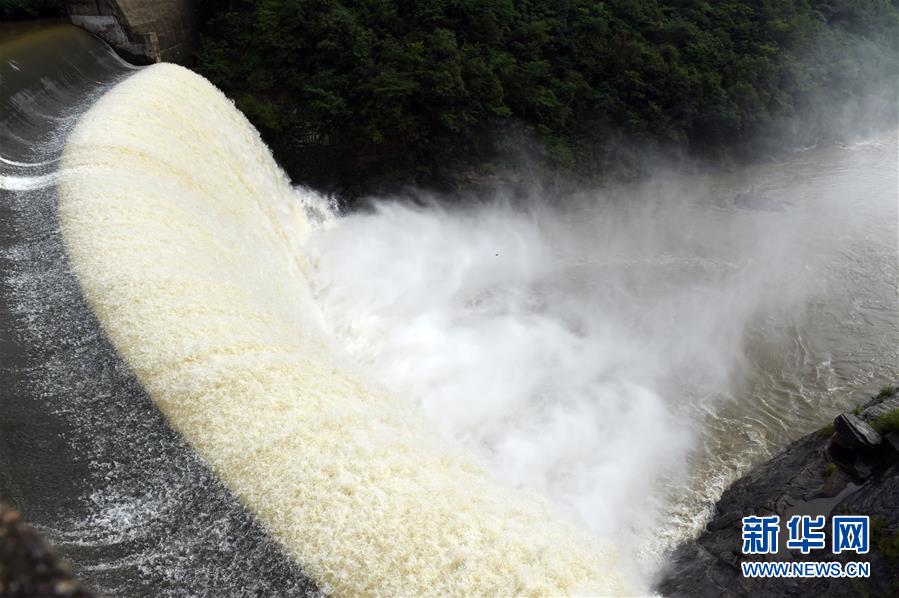 6月16日,位于安徽省金寨縣的流波水庫在進行泄洪。新華社記者 周牧 攝