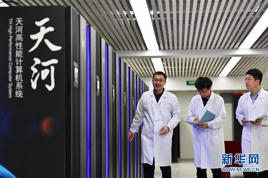 工作人員在國家超級計算天津中心“天河三號”原型機機房內(nèi)巡查(2019年4月24日攝)。新華社記者李然攝