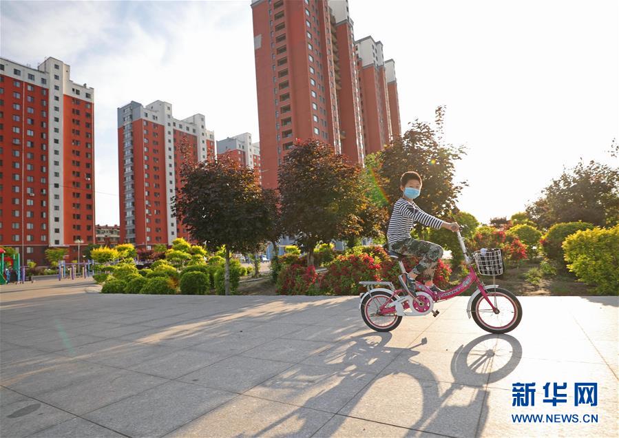 一名小朋友在遼寧省遼陽(yáng)市遼陽(yáng)縣劉二堡鎮(zhèn)前杜村居民小區(qū)內(nèi)騎自行車(chē)玩耍(6月1日攝)。新華社記者楊青攝