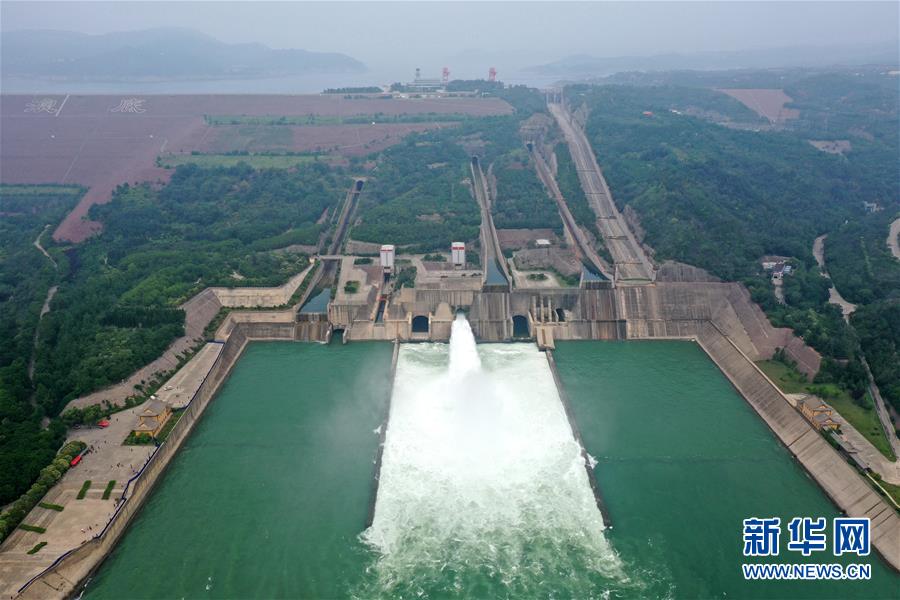 這是6月23日拍攝的黃河小浪底水利樞紐工程(無人機(jī)照片)。近日,黃河小浪底水利樞紐工程開啟洪水調(diào)度運(yùn)用模式,從空中俯瞰,蔚為壯觀。新華社記者郝源攝