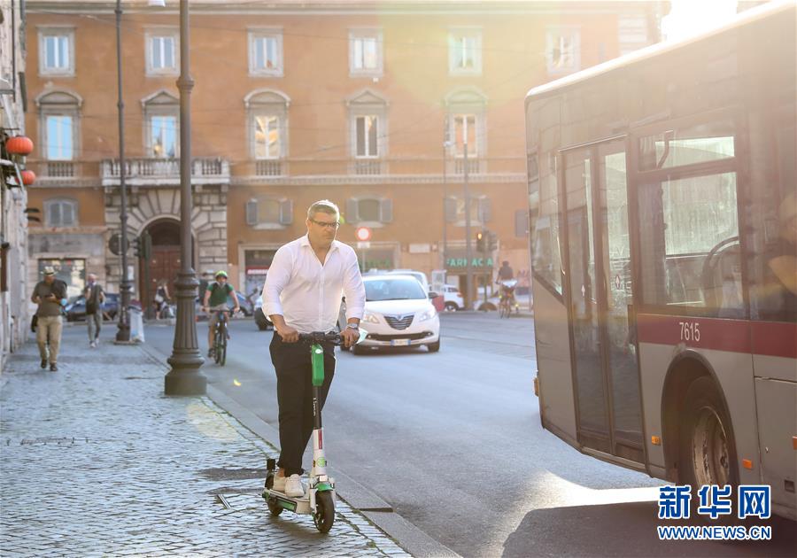 6月23日,在意大利首都羅馬,一名男子騎著電動(dòng)踏板車在城市中穿行。新華社記者程婷婷攝