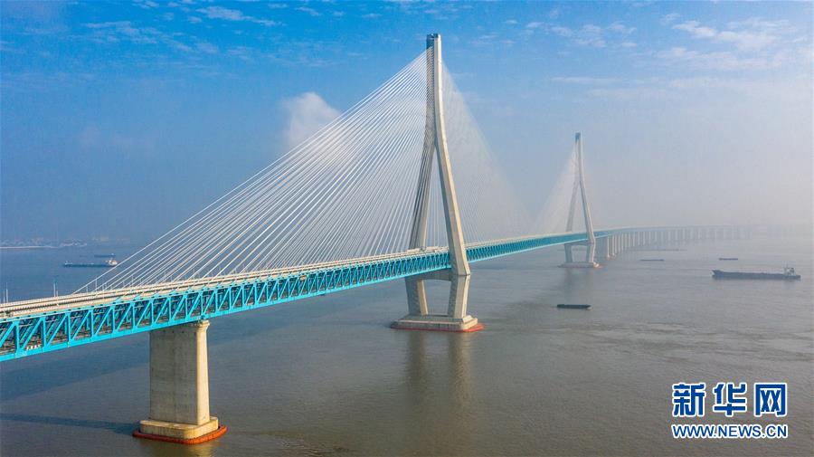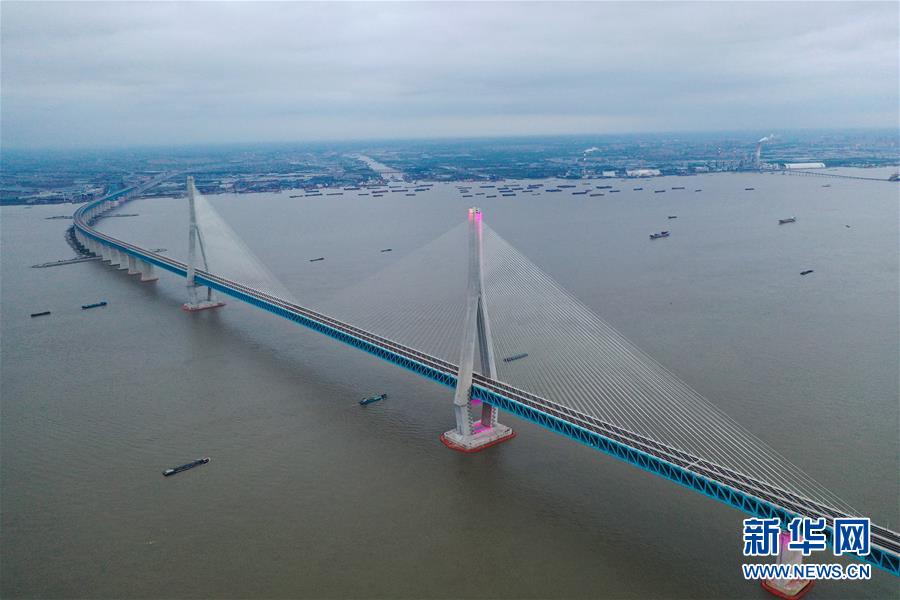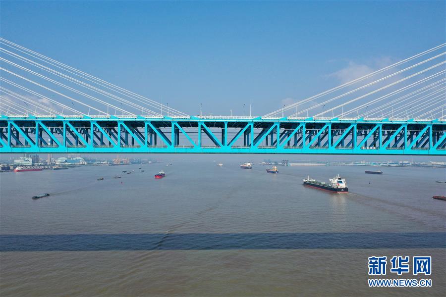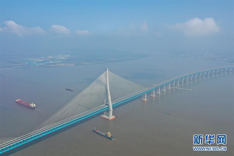 滬蘇通長(zhǎng)江公鐵大橋(6月29日攝,無(wú)人機(jī)照片)。即將于7月1日通車的滬蘇通長(zhǎng)江公鐵大橋北起江蘇南通,南至江蘇張家港,公鐵合建跨江正橋全長(zhǎng)5827米,為集合高速公路、客貨混線鐵路、高速鐵路的“三合一”過(guò)江通道,建成通車后將有效促進(jìn)長(zhǎng)三角城市群跨江融合、協(xié)同發(fā)展。新華社記者李博攝