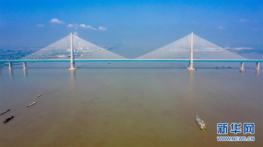 滬蘇通長江公鐵大橋(6月30日攝,無人機照片)。即將于7月1日通車的滬蘇通長江公鐵大橋北起江蘇南通,南至江蘇張家港,公鐵合建跨江正橋全長5827米,為集合高速公路、客貨混線鐵路、高速鐵路的“三合一”過江通道,建成通車后將有效促進長三角城市群跨江融合、協(xié)同發(fā)展。新華社記者李博攝