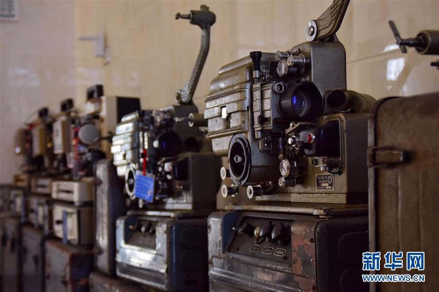 6月30日,朱生榮和兒子朱強創(chuàng)辦的“馬鳴電影館”內(nèi)存放著第一代國產(chǎn)放映機(jī)“老五四型”放映機(jī)。新華社記者鄭夢雨攝