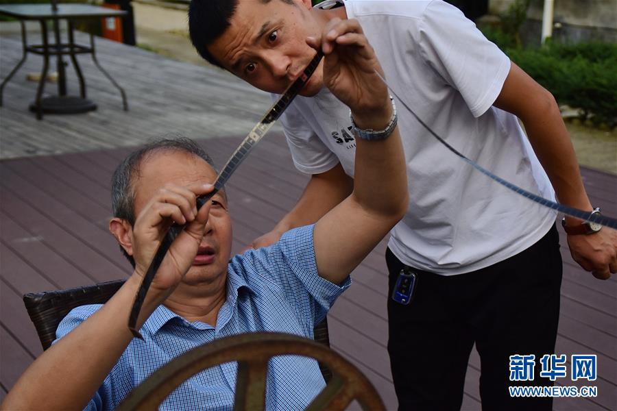 在浙江嘉興桐鄉(xiāng)市洲泉鎮(zhèn)馬鳴村,王志華、朱文炳、朱生榮、朱強四代電影放映員,“接力”放映電影五十余年。一臺放映機(jī)、幾盤膠片、一面白墻,構(gòu)成他們的“流動電影院”,“噠噠”的走帶聲轉(zhuǎn)出了光影老味道,也轉(zhuǎn)動了整村人的文化生活。第四代放映人“85后”小伙朱強從小在幕布前長大,深受父輩影響。隨著數(shù)字電影的普及,膠片電影逐漸退場。如今的他在馬鳴電影館、學(xué)校等場所進(jìn)行教學(xué)、展示等活動,宣傳電影文化。對他而言,一代接一代從事電影工作,就是為了承續(xù)傳統(tǒng)?!皫煚敔斀涛覀冋J(rèn)真放好每部電影,即便只有一位觀眾,我們也不會讓它停機(jī)?!敝鞆娬f。
