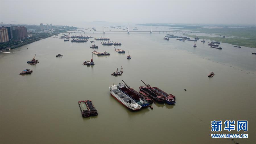 7月5日拍攝的岳陽洞庭湖主航道(無人機(jī)照片)。受持續(xù)強(qiáng)降雨和上游來水影響,洞庭湖城陵磯水位持續(xù)上漲。水文監(jiān)測(cè)數(shù)據(jù)顯示,截至7月5日16時(shí),洞庭湖城陵磯水位達(dá)到32.75米,超警戒水位0.25米。當(dāng)?shù)胤姥床块T正嚴(yán)密監(jiān)控水情雨情,備好防汛物資并加強(qiáng)應(yīng)急值守,力爭(zhēng)安全度汛。新華社記者陳澤國(guó)攝