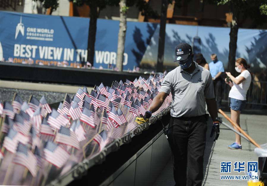 7月4日,工作人員在當(dāng)日重新開放的美國紐約“9·11”世貿(mào)中心遺址做清潔。當(dāng)日是美國獨(dú)立日,美國多地疫情仍面臨嚴(yán)峻形勢。美國約翰斯·霍普金斯大學(xué)實時統(tǒng)計數(shù)據(jù)顯示,美國累計新冠確診病例4日已超過280萬例。新華社記者王迎攝