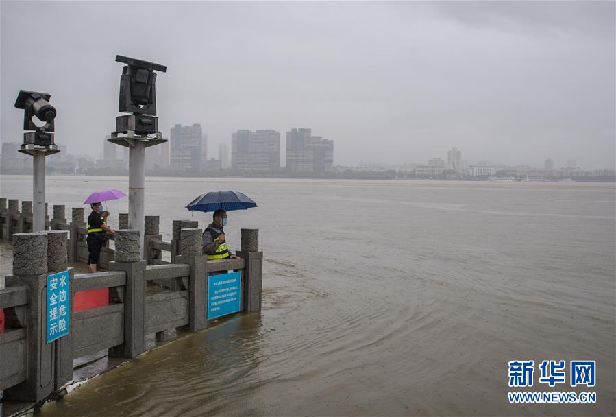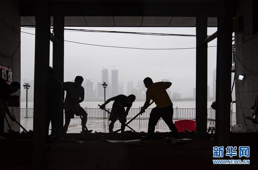 7月6日,工作人員在武漢龍王廟觀察水情。記者6日從武漢市防汛抗旱指揮部辦公室獲悉,5日以來,武漢遭暴雨襲擊,全市多處路段漬水。至6日4時,長江漢口站超設(shè)防水位1.79米,漢江新溝站超警戒水位0.01米。鑒于當前水雨汛情和漬澇情況,武漢市從6日5時起,將排澇應(yīng)急響應(yīng)級別提升至Ⅱ級;從6時30分起,將防汛應(yīng)急響應(yīng)級別提升至Ⅱ級。新華社記者肖藝九攝