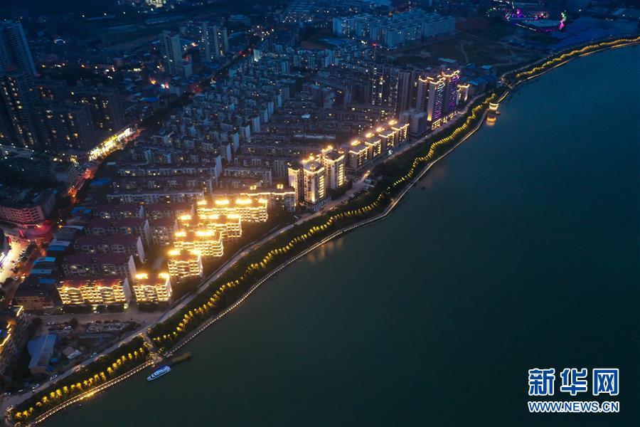 這是融安縣城夜色(7月7日攝,無人機照片)。夏夜的廣西融安縣城燈火璀璨,景色迷人。新華社記者張愛林攝