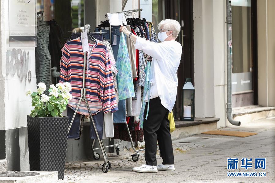 7月7日,一名佩戴口罩的女子在德國首都柏林的一家商店外挑選衣服。針對有地方官員呼吁取消民眾乘坐公交車和在商場購物時須戴口罩的規(guī)定,德國聯(lián)邦政府6日表示,支持延續(xù)“口罩強制令”。4月底,德國全部16個聯(lián)邦州陸續(xù)出臺“口罩強制令”,即居民在乘坐公交車和購物時須佩戴口罩。新華社記者單宇琦攝