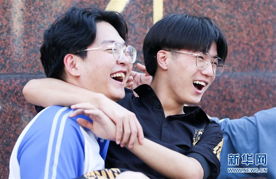 7月8日,在吉林省長(zhǎng)春市第八中學(xué)考點(diǎn)門口,考生慶祝高考結(jié)束。當(dāng)日,全國(guó)部分地區(qū)2020年高考結(jié)束。新華社發(fā)(顏麟蘊(yùn)攝)