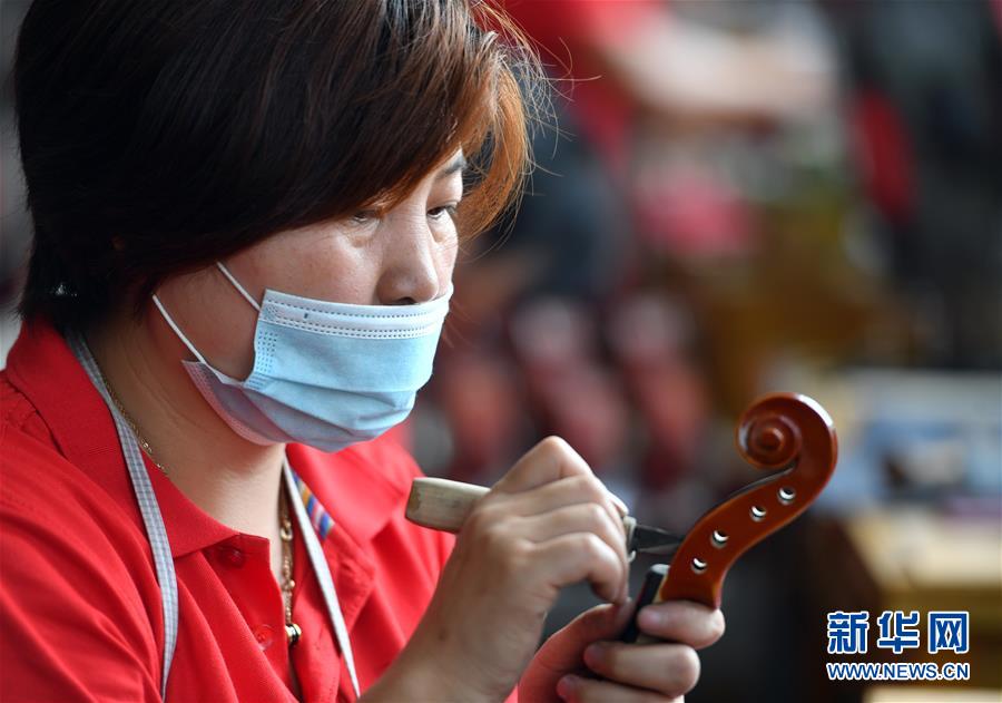 工人在河南駐馬店市確山縣提琴產(chǎn)業(yè)園提琴生產(chǎn)車間工作(7月3日攝)。新華社記者李嘉南攝