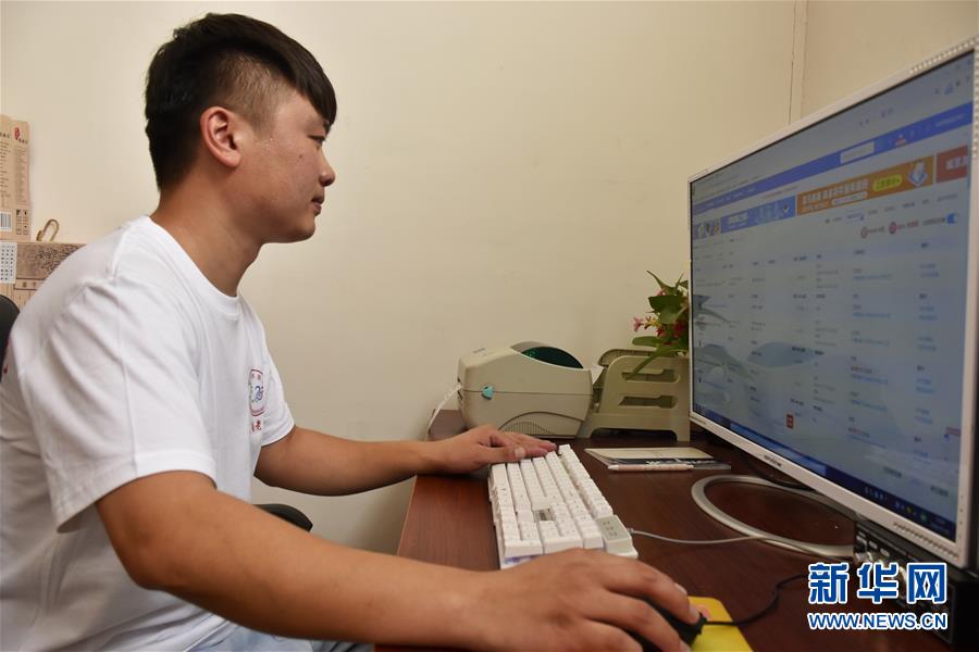 7月8日,張亞釗在處理網(wǎng)絡(luò)訂單。新華社記者韓朝陽(yáng)攝