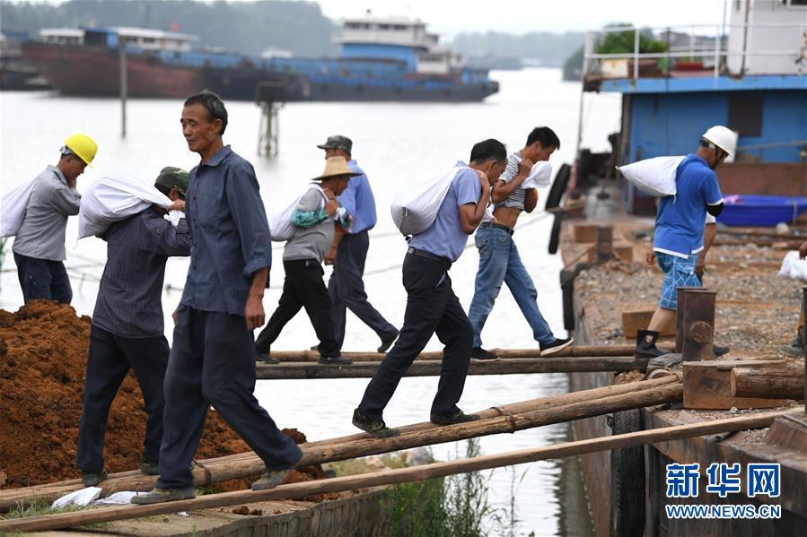7月14日,當(dāng)?shù)卮迕裢簧习徇\(yùn)砂石袋。近日,受洪水影響,安徽省望江縣華陽(yáng)鎮(zhèn)境內(nèi)的江調(diào)圩內(nèi)部道路漫水,搶險(xiǎn)車(chē)輛無(wú)法進(jìn)入。當(dāng)?shù)胤姥床块T(mén)組織船只裝載砂石袋等防汛物資,運(yùn)往圩堤保防汛。新華社記者 劉軍喜 攝